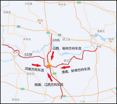 站点紧邻G105国道(京澳线),距G328国道2.3km,距G35济广高速马店收费站4.7km,地理位置优越。 G35济广高速、G105国道为皖西主要纵向公路干线,是山西、豫东、皖北至皖南、豫东、江西主要货运通道,且该站紧邻六安市铁矿区,货运重卡众多,该站过路重卡及本地重卡资源丰富。 站前道路G105国道,双向两车道,无隔断,双向来车加注均较为便利。